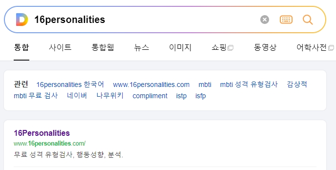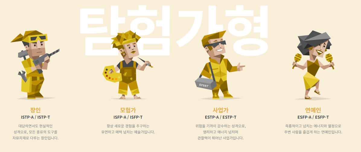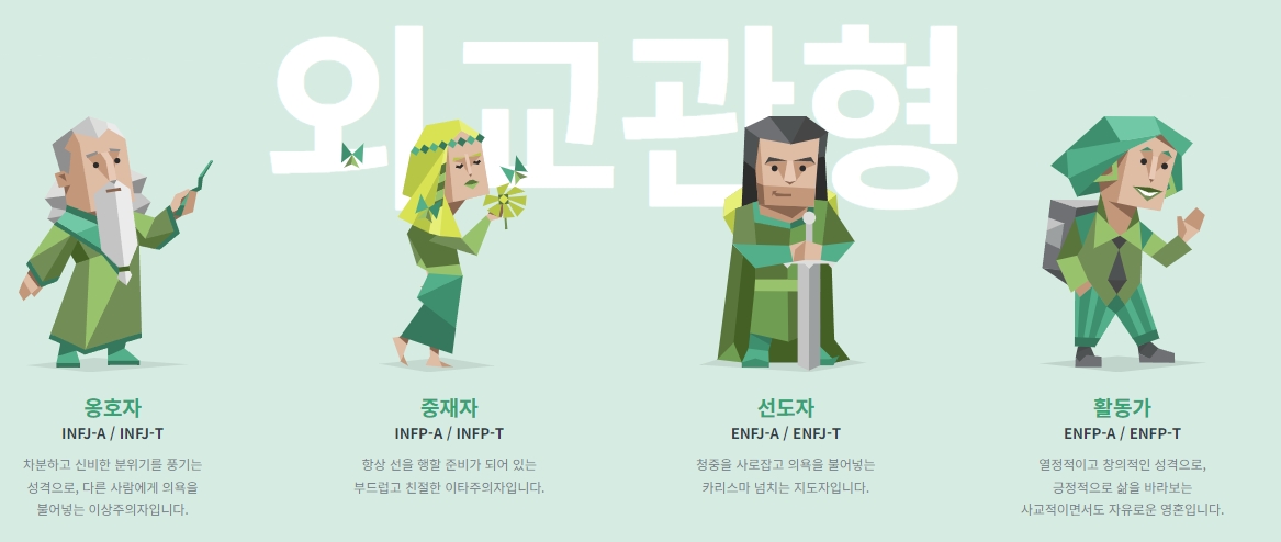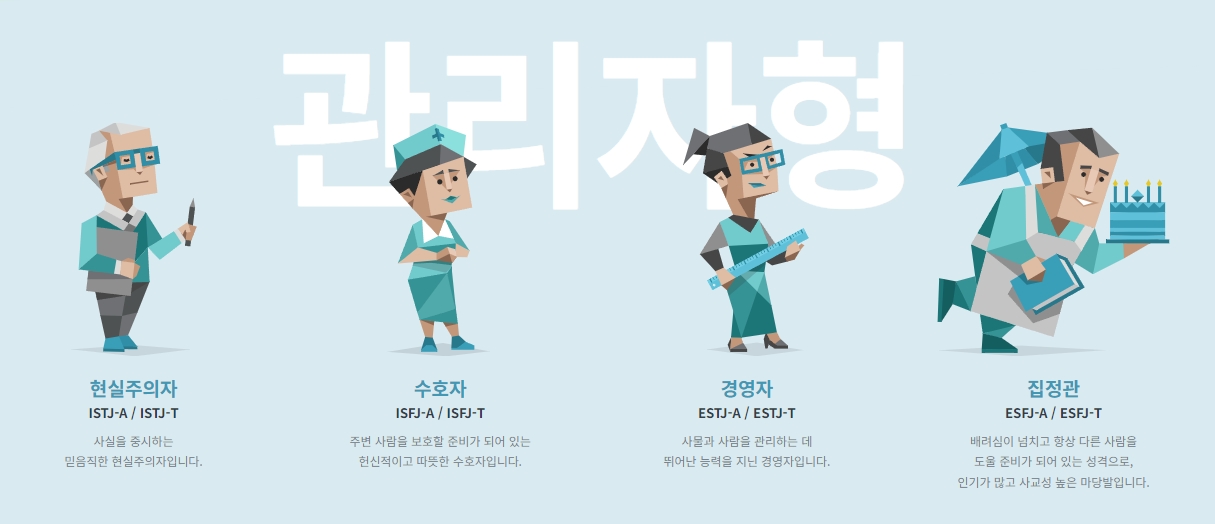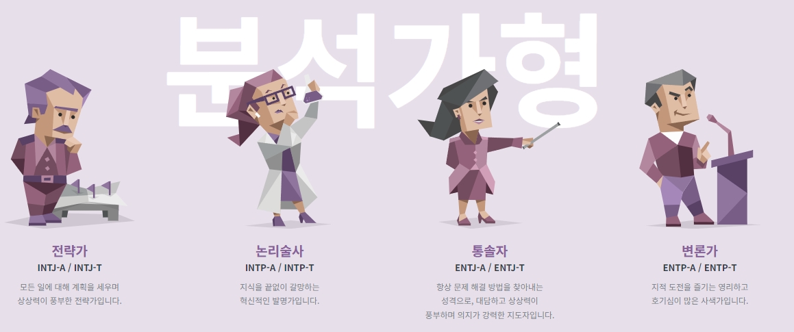 언어 변경 후, 홈페이지 상단의 메뉴를 통해 성격 유형 메뉴로 이동할 수 있습니다. 여기서 다양한 성격 유형을 자세히 알아볼 수 있습니다.
