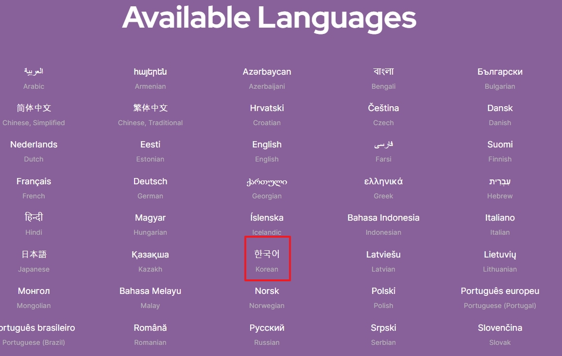 홈페이지에서는 우측 상단에 위치한 지구본 모양 아이콘을 클릭하여 사용 언어를 한국어로 변경할 수 있습니다. 이렇게 언어를 바꾸면 홈페이지의 모든 내용을 한국어로 접할 수 있습니다.