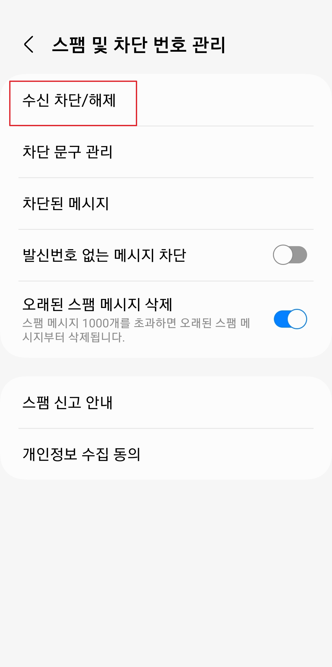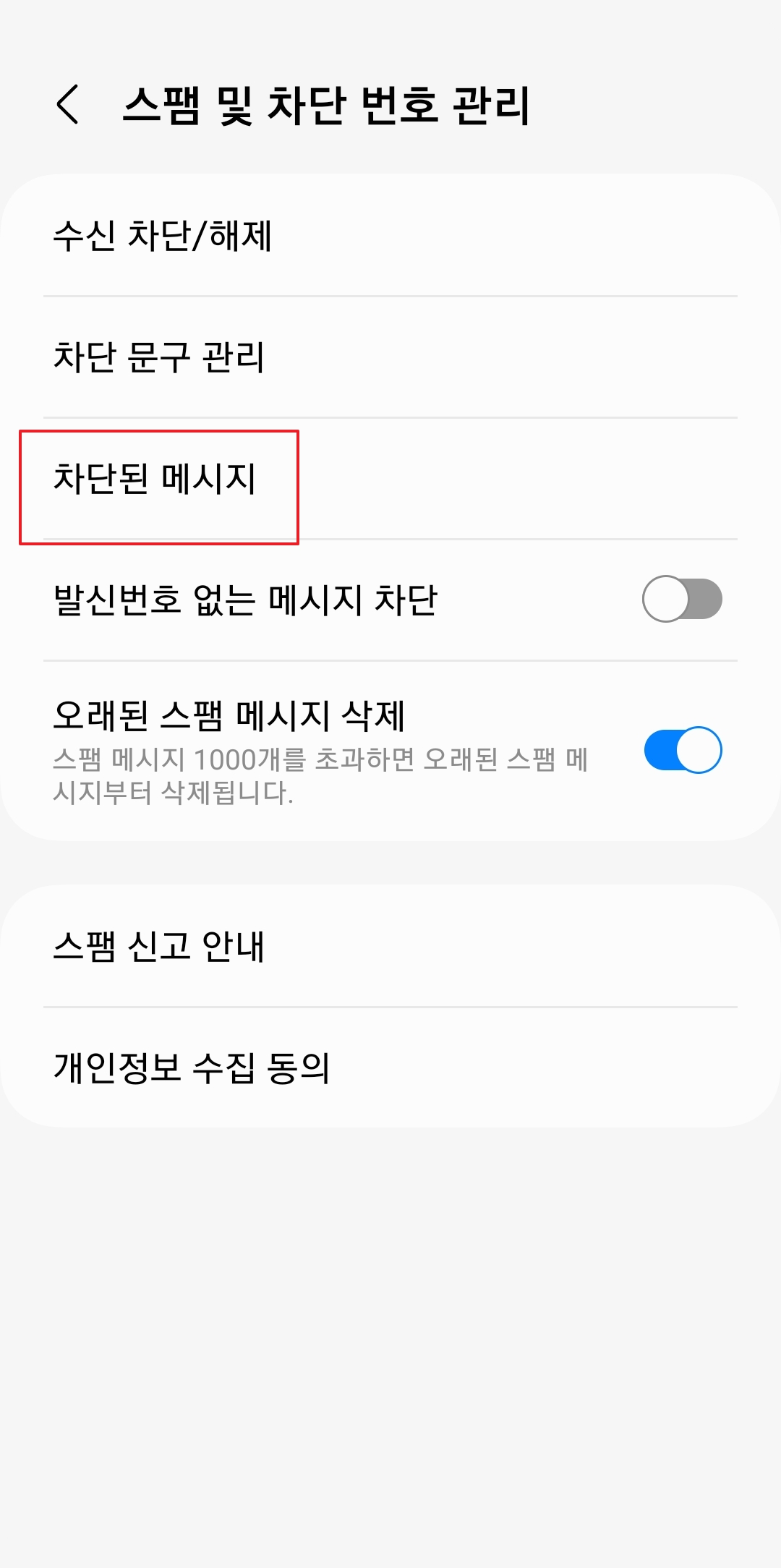 여기에서 스팸 및 차단 번호 관리 기능을 통해 특정 번호로부터 메시지 수신을 막거나, 이미 차단한 번호 목록을 확인할 수 있습니다.