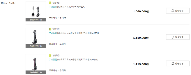 날짜를 선택하면 이렇게 해당 날짜에 방송되었던 상품들의 목록을 시간순으로 확인할 수 있습니다. 상품 사진과 이름, 그리고 방송 시간을 명확하게 보여주기 때문에 찾으려던 상품을 금방 발견할 수 있을 거예요.