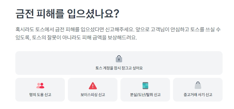 그리고 토스에는 토스 안심보상제라는 아주 특별한 제도가 있어요. 제3자의 명의 도용이나 보이스피싱, 심지어 중고 거래 사기까지 회사의 직접적인 책임이 없는 경우라도 도의적 차원에서 피해 금액을 보상해 주는 제도입니다. 저도 처음 이 내용을 접했을 때 '정말 이런 것까지 해준다고?' 싶어서 꽤 놀랐거든요.