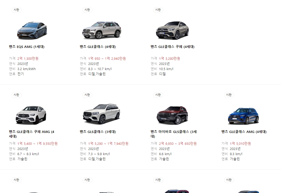 저도 이번에 보면서 새삼 느낀 건데, 벤츠 라인업이 예전보다 정말 촘촘하고 다양해졌더라고요. EQS 같은 최신 전기차부터 시작해서 GLE, 마이바흐 GLS, 그리고 날렵한 쿠페형 모델들까지 종류가 상당합니다.