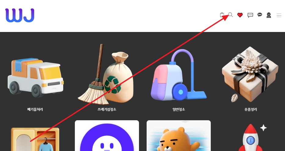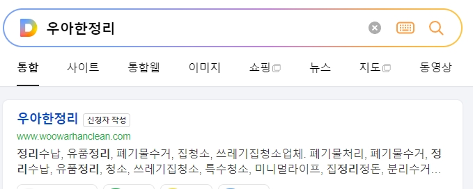 1. 우아한정리 홈페이지로 들어갑니다. 이곳에서는 정리수납, 유품정리, 폐기물수거, 집청소 등의 다양한 서비스를 제공하고 있어요