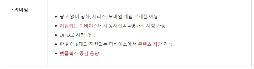 4. 프리미엄 요금제는 최고의 화질인 UHD로 제공되며, 광고 없이 모든 콘텐츠를 즐길 수 있어요. 이 요금제는 동시에 4명이 시청할 수 있고, 한 번에 6대의 디바이스에 콘텐츠를 저장할 수 있어요.