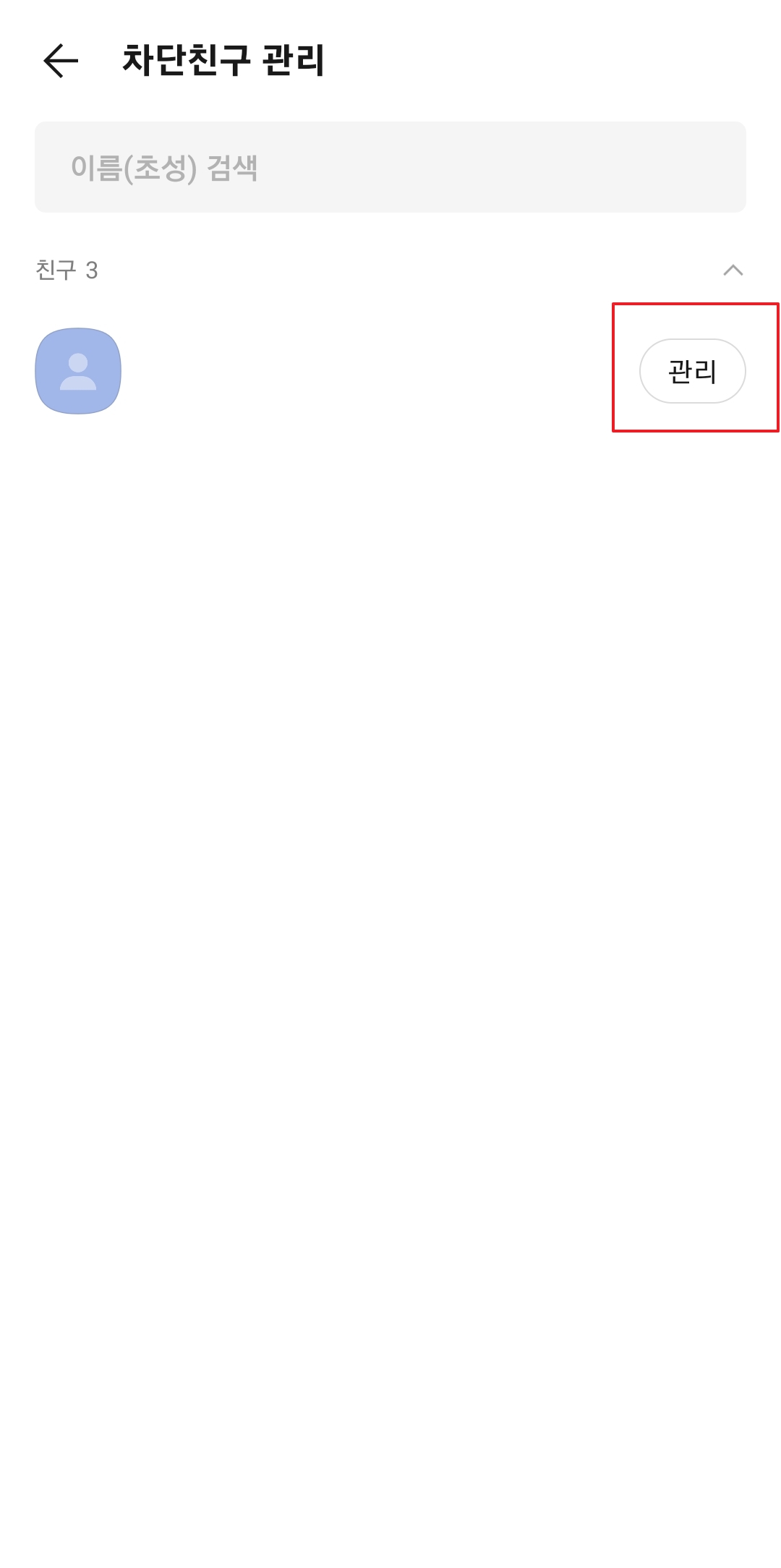 5. 차단된 친구 목록에서 차단을 해제할 친구의 이름 옆에 있는 관리 버튼을 누르세요. 차단 해제 버튼을 클릭하고, 나타나는 확인 대화 상자에서 확인을 선택하여 차단을 해제합니다.