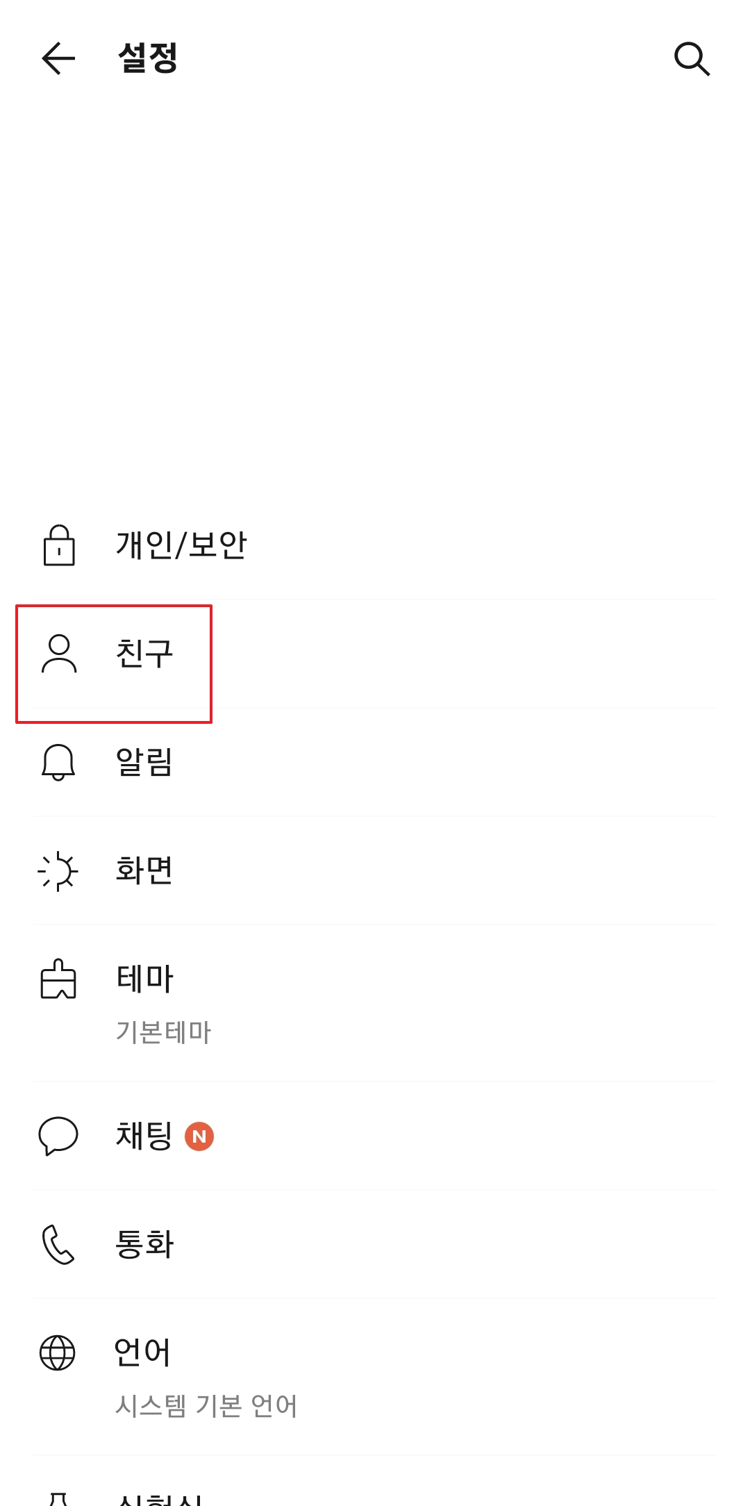 4. 설정 메뉴에서 친구 섹션을 찾고 클릭하세요. 그런 다음 친구 관리 항목 아래에 있는 차단 친구 관리를 선택하여 차단된 친구 목록으로 이동합니다.