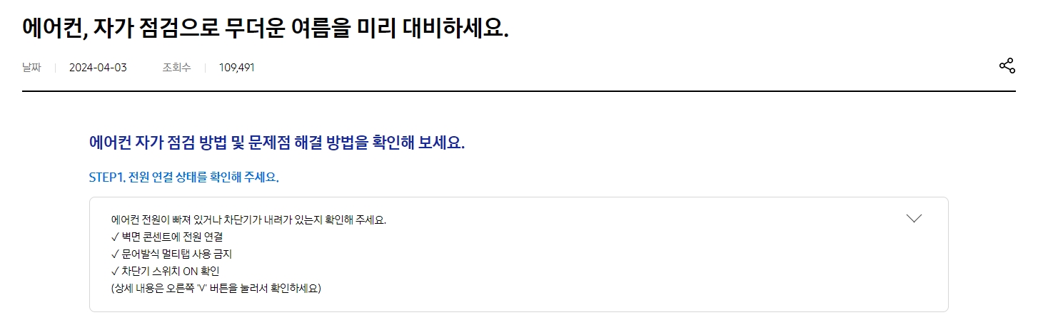 여름철에 에어컨이 고장 나면 많은 사람들이 곧바로 서비스센터에 전화를 걸지만, 여름 성수기에는 서비스 신청이 몰리기 때문에 최소 3일에서 4일, 길게는 1주일에서 2주일도 걸릴 수 있습니다. 따라서 에어컨 점검과 세척은 미리 해두는 것이 좋아요. 특히 4월쯤 세척과 점검을 받으면 할인을 받을 수 있는 경우도 많아서 경제적입니다.