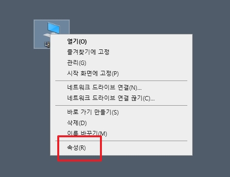 1. 먼저 바탕화면에서 내 PC 아이콘을 찾습니다. 이 아이콘을 마우스 오른쪽 버튼으로 클릭하여 메뉴창을 엽니다. 메뉴창에서 가장 아래에 있는 속성 버튼을 클릭합니다.