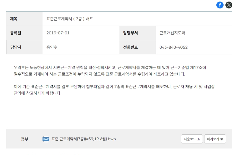 표준근로계약서 양식 무료