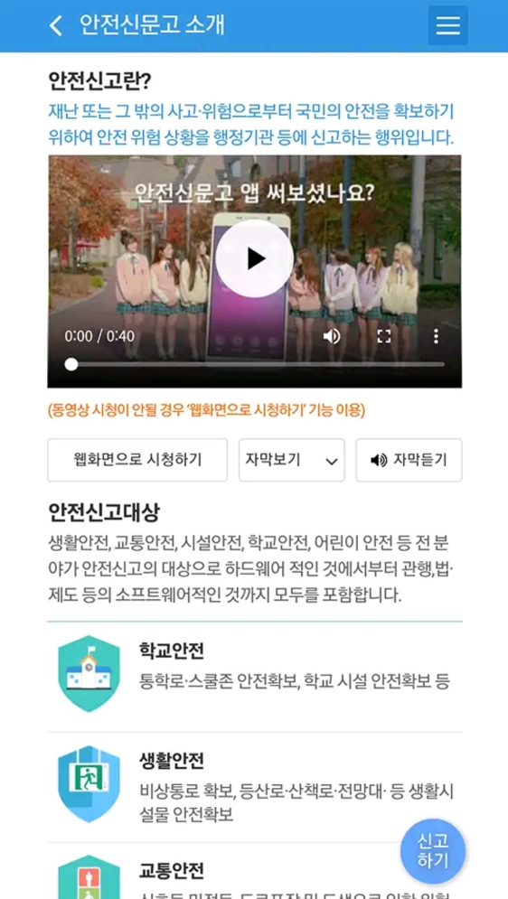 앱을 실행하면 신고 유형을 선택하고, 사진과 동영상을 첨부하며, 발생 지역과 신고 내용을 입력하여 신고할 수 있습니다. 사진은 1장으로 되지 않으니 여러 장을 첨부할 수 있습니다. 상세한 내용은 어플을 참고하세요.