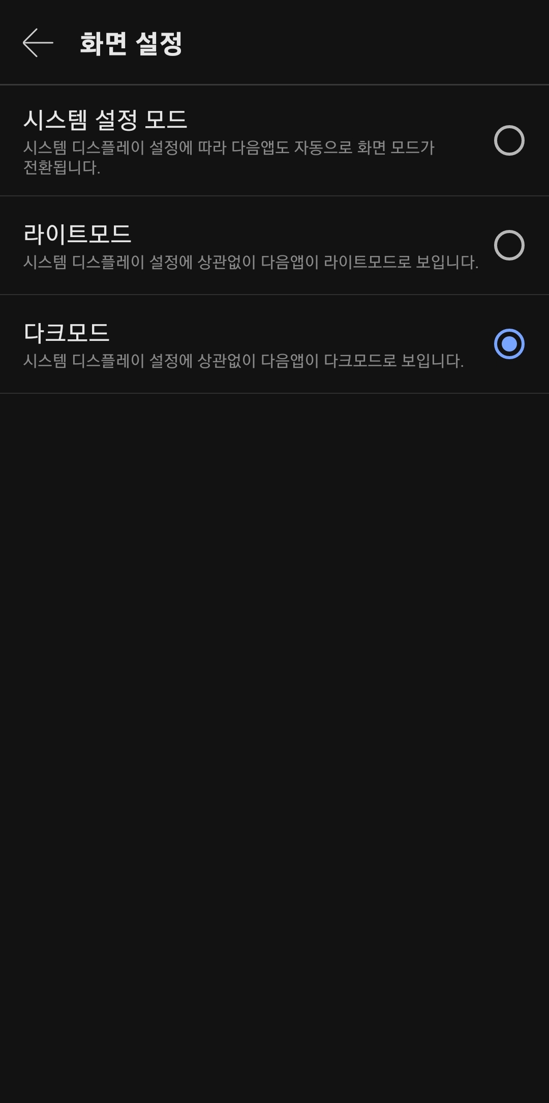 다크모드는 눈의 피로를 줄이고 배터리 소모를 줄이는 데 도움이 됩니다. 다음을 다크모드로 설정하는 방법은 두 가지가 있습니다. 첫 번째 방법은 브라우저 설정을 통해 다크모드를 활성화하는 것이고, 두 번째 방법은 다음 어플을 다운로드 받아 어플 자체적으로 다크모드를 설정하는 것입니다.