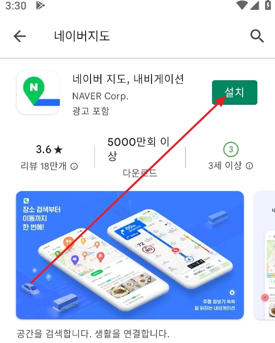 2. 플레이스토어 상단의 검색창을 클릭하고, 네이버지도라고 입력한 후 검색 결과에서 해당 앱을 찾아 설치 버튼을 누릅니다. 이 과정은 네이버지도 앱을 휴대폰에 다운로드하고 설치하는 단계입니다.