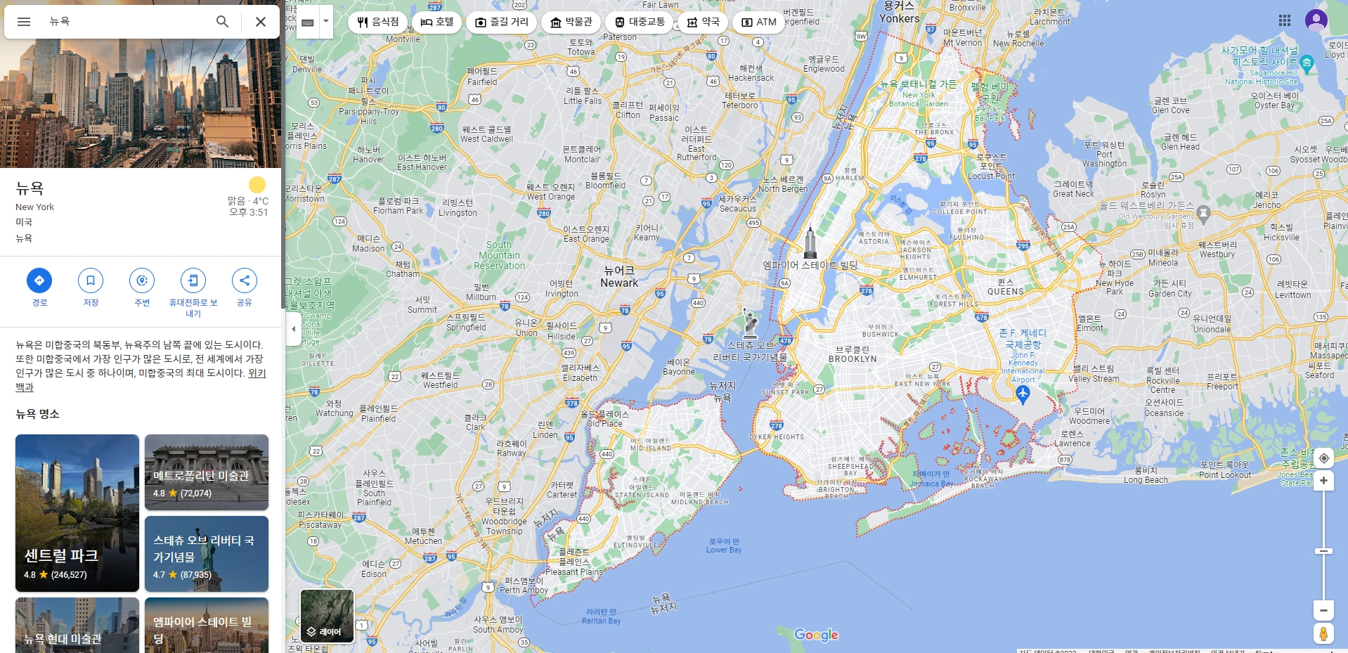 4. 다음으로 구글 지도로 들어갑니다. 구글 지도는 전 세계를 지원하며, 다양한 정보를 제공합니다.