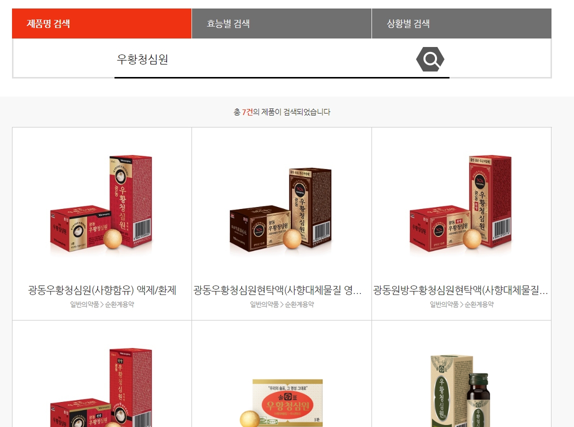 3. 우리가 흔히 우황청심환이라고 생각하지만, 실제 이름은 우황청심원이기 때문에 '우황청심원'으로 검색해야 합니다. 정확한 이름으로 검색하는 게 중요해요.