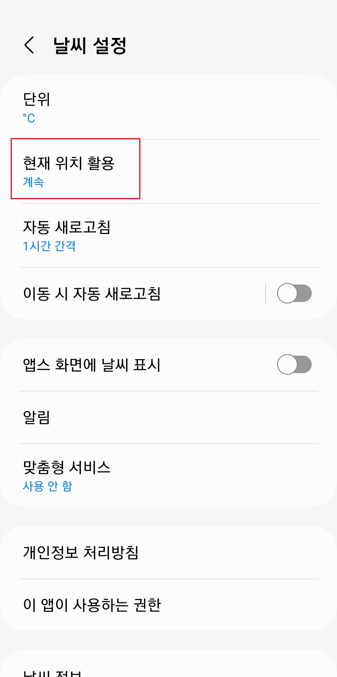 하지만 이 앱을 최대한 효율적으로 사용하기 위해서는 몇 가지 설정을 조정해줘야 합니다. 날씨 앱을 열고 설정 메뉴에 들어가면 현재 위치 활용이라는 옵션을 찾을 수 있습니다. 이를 항상으로 설정하면 사용자가 위치한 곳의 날씨 정보를 지속적으로 받아볼 수 있습니다. 추가로, 자동 새로고침 시간을 1시간 간격으로 설정하면 매 시간 날씨 정보가 업데이트되어 더 정확하고 최신의 정보를 제공받을 수 있습니다.