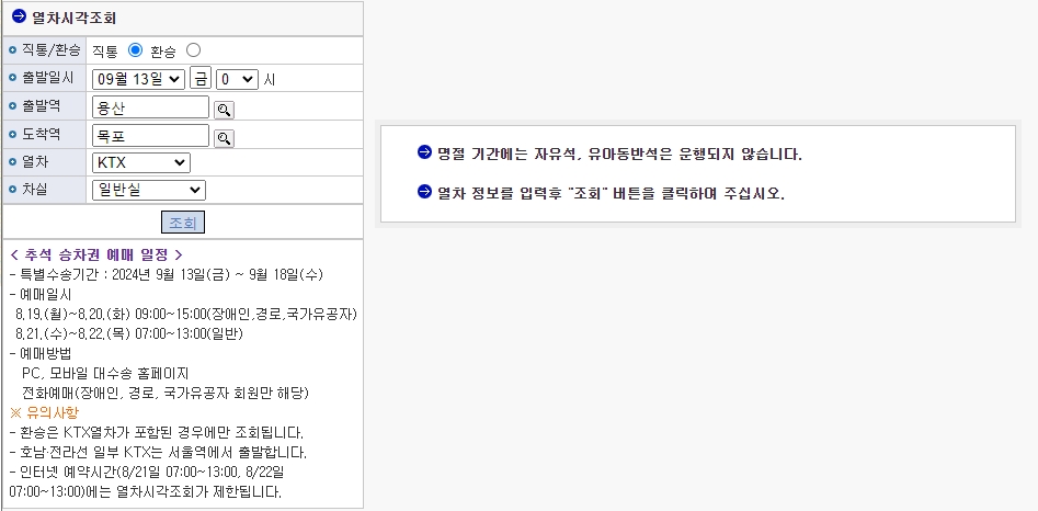 8. 예매 시, 명절 기간에는 자유석이나 유아동반석이 운행되지 않으며, 예약 정보는 하나의 인터넷 창에서만 접속할 수 있으니 주의해야 해요. 필요한 정보는 미리 입력해두고, 예매 시간이 시작되면 빠르게 예약을 진행하는 것이 좋아요.