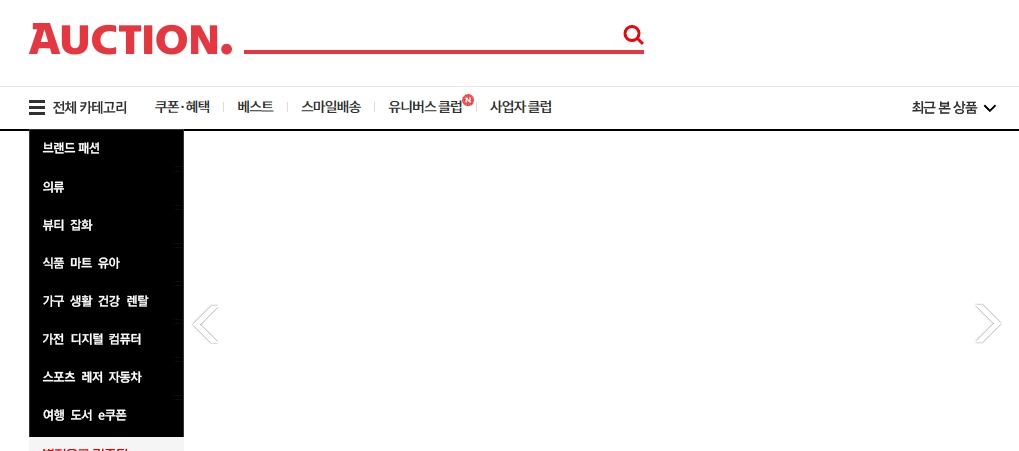 2. 옥션 홈페이지 상단에는 다양한 카테고리가 나열되어 있어요. 브랜드 패션, 의류, 뷰티, 잡화, 식품, 마트, 유아, 가구, 생활, 건강, 렌탈 등 여러 카테고리에서 원하는 상품을 쉽게 찾을 수 있어요. 각 카테고리는 세부적으로 나뉘어 있어, 사용자가 원하는 제품을 더욱 빠르게 찾을 수 있어요.