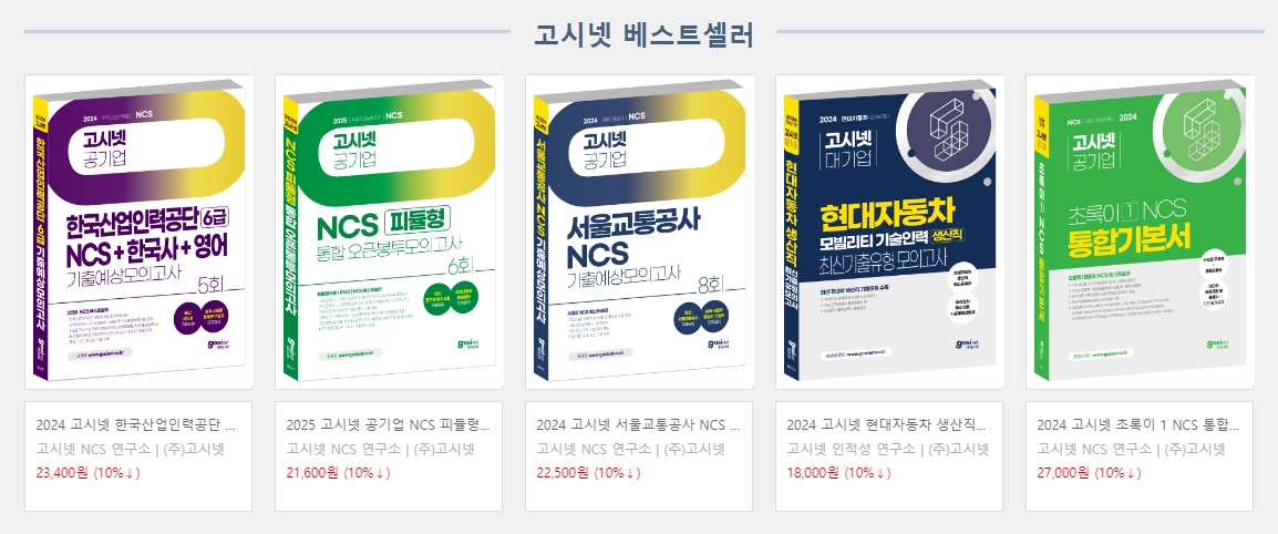 6. 고시넷 베스트셀러 코너에서는 최신 기출문제집, 실전 모의고사 문제집 등 인기 있는 수험서를 소개하고 있어요. 이곳에서 제공되는 교재는 최신 출제 경향을 반영한 내용으로, 효과적인 학습이 가능합니다. 또한, 다양한 할인 혜택을 통해 경제적인 부담을 덜 수 있어요. 수험생들에게 꼭 필요한 자료들을 이 코너에서 손쉽게 찾아볼 수 있습니다.