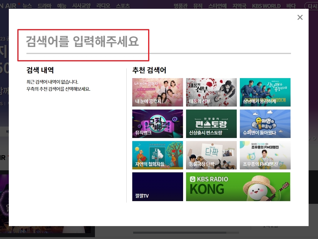 2. KBS 홈페이지에 접속한 후, 우측 상단에 위치한 검색 버튼을 클릭합니다. 이 버튼은 홈페이지 내에서 원하는 콘텐츠를 쉽게 찾을 수 있게 해주며, 드라마 제목을 입력할 수 있는 검색창을 활성화합니다.