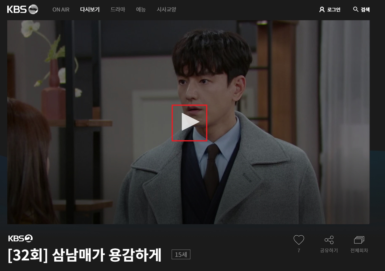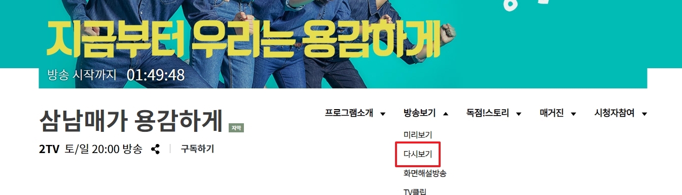 5. 프로그램 상세 페이지에서 방송보기 버튼을 찾습니다. 이 버튼을 클릭하면, 여러 메뉴가 나타나는데, 여기서 다시보기를 선택하세요. 이 메뉴를 통해 드라마의 각 회차별 다시보기가 가능합니다.