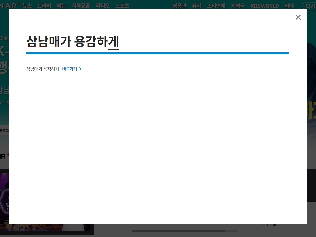 3. 검색창에 보고 싶은 드라마의 제목을 입력합니다. 예를 들어, 삼남매가 용감하게라는 드라마를 보고 싶다면, 해당 제목을 입력하면 됩니다. 이렇게 검색하면 해당 드라마와 관련된 결과가 화면에 표시됩니다.