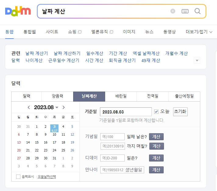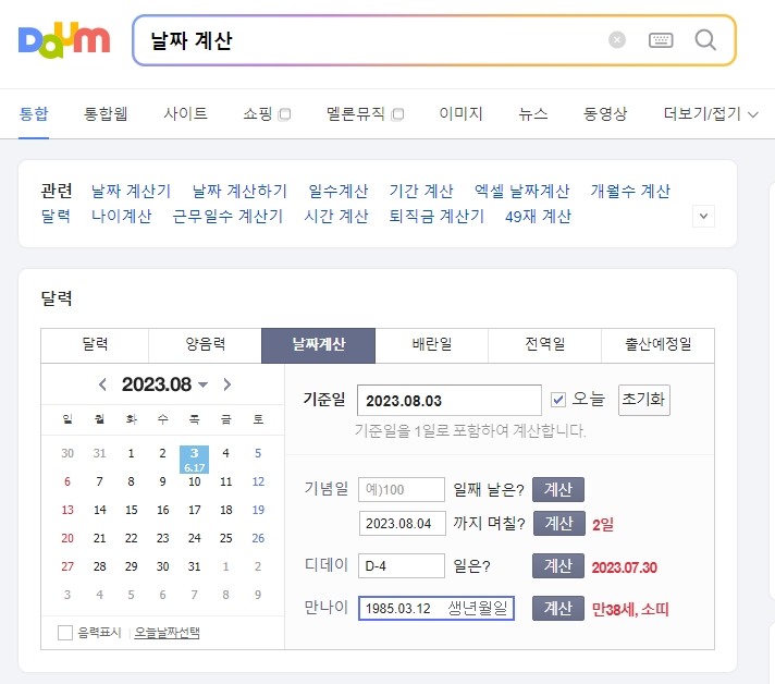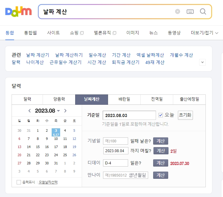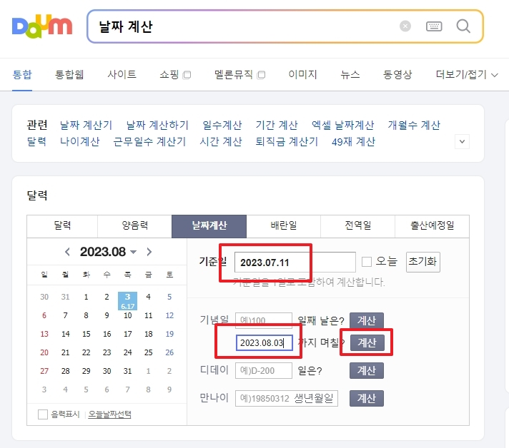 2. 기념일을 체크하기 위해 날짜 계산기를 사용해보았습니다. 예를 들어, 8월 3일을 기준으로 5일째 되는 날을 계산했더니, 8월 7일이라고 나왔습니다. 이 계산은 시작일인 8월 3일부터 5일째 되는 날인 8월 7일까지를 포함하여 계산됩니다.