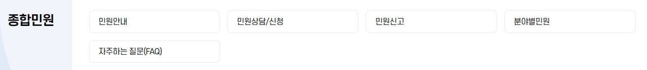 3. 종합 민원 탭에서는 민원 안내와 상담/신청, 민원 신고 등 다양한 민원 처리 방법을 제공하고 있습니다. 또한 자주 묻는 질문(FAQ)도 함께 제공되어 있어 민원 신청 전에 궁금한 점들을 미리 해결할 수 있는 점이 좋았습니다.