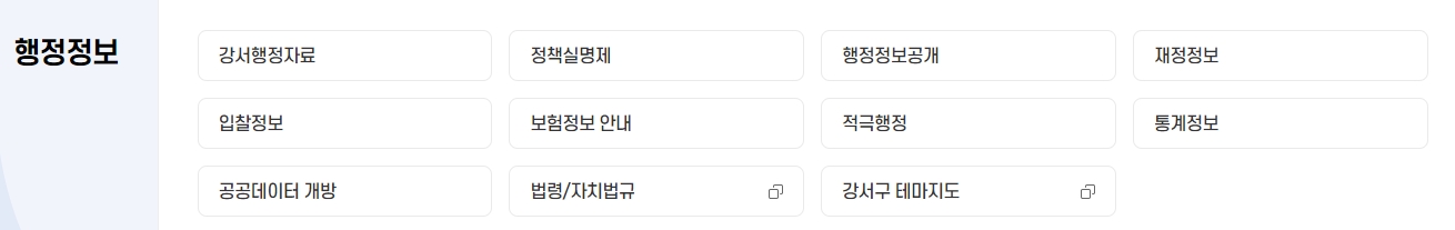 8. 강서구의 다양한 분야별 정보도 제공되고 있었습니다. 복지, 경제, 일자리, 문화 관광 등 주민들이 실생활에서 필요한 다양한 정보들을 쉽게 찾을 수 있었습니다. 각 분야별로 정보를 제공하는 방식이 직관적이고 편리해 보였습니다.