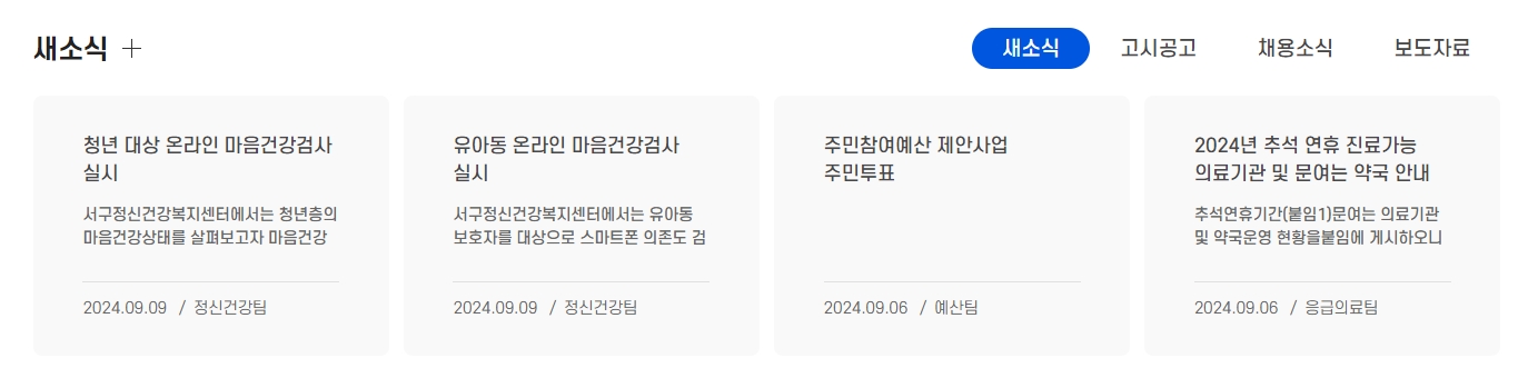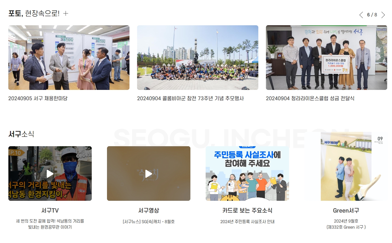 인천 서구청 홈페이지에서는 이러한 지역의 다양한 생활 정보, 복지 서비스, 주거 정보 등을 제공하고 있어서 서구 주민들에게 매우 유용한 사이트입니다. 또한, 서구의 문화 행사나 교육 프로그램 같은 주민들을 위한 정보도 자주 업데이트되기 때문에, 서구에 거주하거나 방문할 계획이 있는 사람들에게 꼭 필요한 정보를 제공하고 있어요.