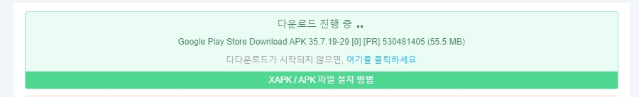 5. 다운로드 진행 중이라는 문구가 보이면, 잠시 기다리시면 됩니다. 만약 다운로드가 바로 시작되지 않으면 여기를 클릭하세요라는 문구를 눌러서 수동으로 시작할 수 있습니다.
