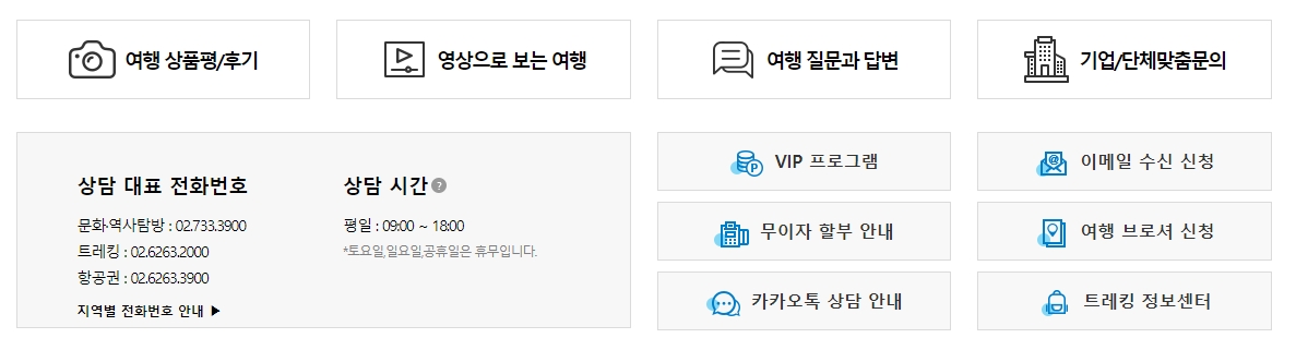 8. 상담을 원하는 사람들을 위해 상담 대표 전화번호와 상담 시간 정보도 명확하게 제공되고 있습니다. 트레킹이나 문화탐방 등 각 분야에 맞는 담당자에게 전화를 걸어 직접 문의할 수 있고, 상담 시간 외에도 이메일 수신 신청, 카카오톡 상담 등 다양한 방법으로 도움을 받을 수 있습니다.
