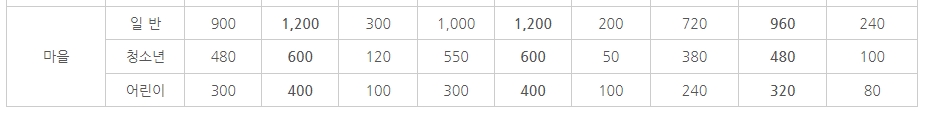 마을버스의 일반 요금은 교통카드 기준 900원에서 1,200원으로 300원이 인상되었고, 현금 기준은 1,000원에서 1,200원으로 200원이 상승하였습니다. 청소년 요금은 교통카드로 480원에서 600원으로 120원이 올랐으며, 어린이는 300원에서 400원으로 100원이 인상되었습니다.