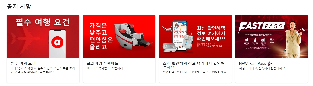 4. 에어아시아 홈페이지에서 제공하는 다양한 공지사항을 통해 최신 정보를 확인할 수 있습니다. 필수 여행 요건을 확인하거나, 프리미엄 플랫베드 좌석 업그레이드 혜택 등 여행객들이 알아야 할 정보가 정리되어 있어요. 최신 할인 혜택 정보를 놓치지 않고 예약할 수 있죠.