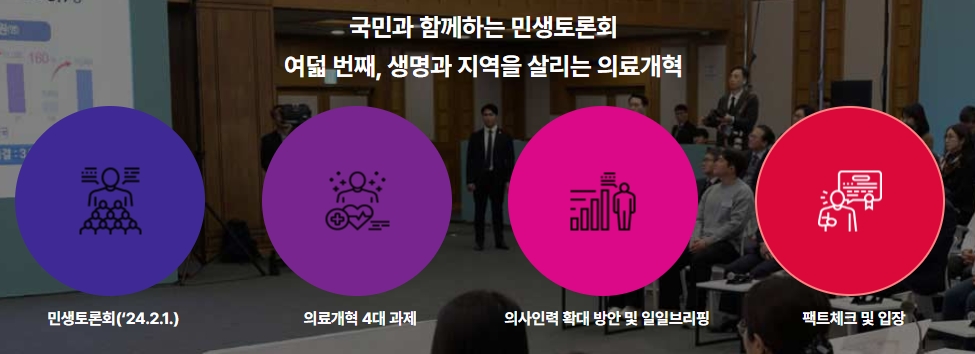 2. 민생토론회를 통해 정부와 국민이 함께하는 의료 개혁 방안을 논의합니다. 이 토론회는 국민의 생명과 지역 의료의 중요성을 다루며, 각종 문제 해결을 위한 방향을 제시하고 있습니다.