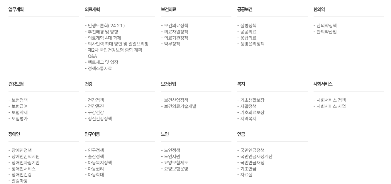 1. 보건복지부 홈페이지에 들어가면, 사회복지, 인구정책, 보건의료, 보건산업 등과 관련된 다양한 정보를 확인할 수 있습니다. 특히 장애인 복지, 노인 정책 등 국민들이 꼭 알아야 할 정책들을 잘 정리해 두어, 필요할 때 신속하게 접근할 수 있도록 안내하고 있습니다.