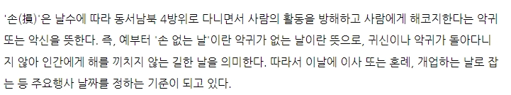 5. 반대로 손 있는 날은 악귀가 활동하는 날이라고 해서 피하는 게 좋다고 알려져 있어요. 예를 들어 음력 날짜에 따라 방향별로 악귀가 활동한다고 여겨지는데, 이러한 믿음은 지금도 중요한 결정을 할 때 참고하는 지침으로 남아 있습니다.