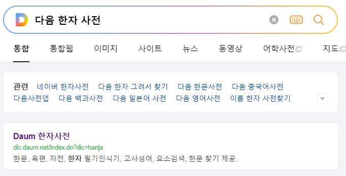다음 한자 사전 홈페이지