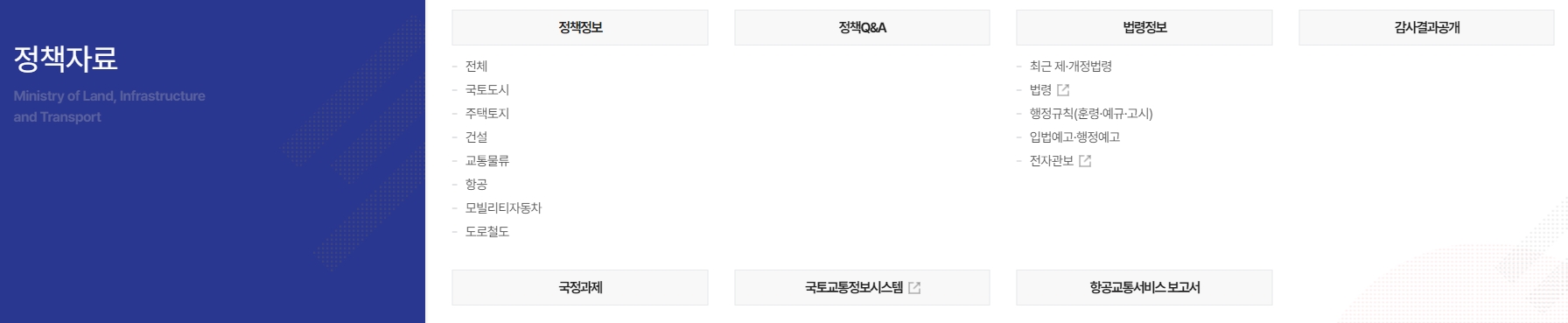 4. 국토교통부는 다양한 분야에서 정책 자료를 제공하는데요, 국토도시, 주택토지, 교통물류, 항공, 도로철도 등 각 분야별로 세부적으로 정리되어 있어 필요할 때 필요한 정보를 찾기 좋습니다. 이러한 자료들을 통해 정부의 정책 방향과 진행 중인 프로젝트들을 쉽게 이해할 수 있어요.