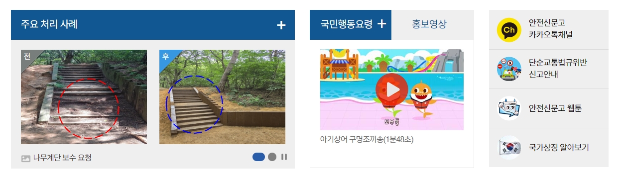 2. 안전신고 메뉴는 홈페이지의 가장 중요한 기능 중 하나예요. 안전과 관련된 모든 문제를 여기서 신고할 수 있는데, 신고 과정도 간편하게 되어 있어 누구나 쉽게 할 수 있답니다. 직접 목격한 상황을 사진이나 동영상으로 첨부해 신고할 수도 있고, 실시간으로 처리 현황을 확인할 수 있어요.