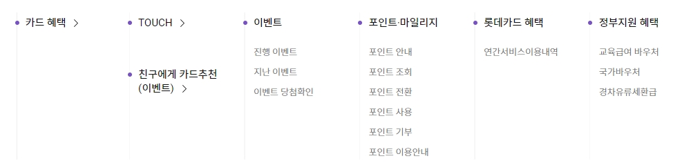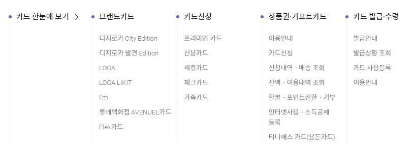 1. 롯데카드 홈페이지에 접속하면 개인, 법인, 가맹점 등 다양한 이용자를 위한 신용카드와 체크카드 발급 서비스는 물론, 금융 상품과 포인트, 이벤트, 혜택 안내까지 폭넓은 서비스를 이용할 수 있어요. 특히 개인 맞춤형 서비스가 잘 제공되기 때문에 각자의 필요에 맞춘 카드와 혜택을 쉽게 찾아볼 수 있답니다.