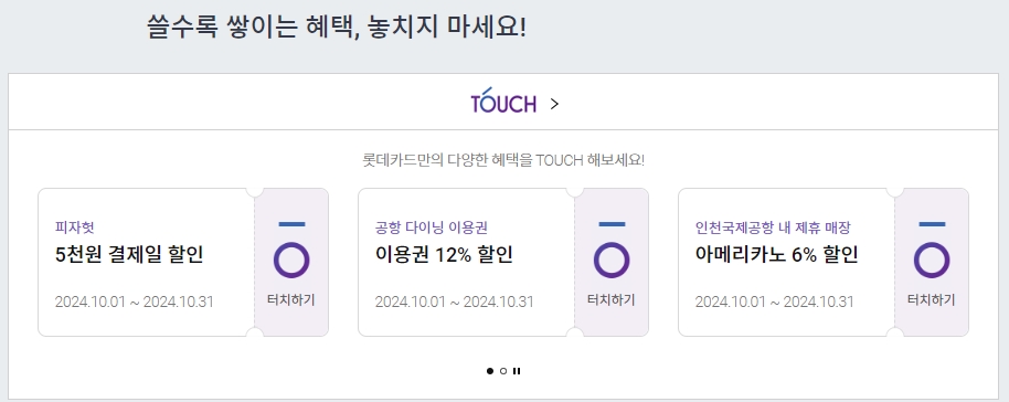 6. 롯데카드에서는 다양한 혜택들이 주기적으로 제공돼요. 할인 혜택이나 이벤트 혜택 등이 자주 갱신되니, 꼭 챙겨서 누리면 실속 있는 소비 생활을 할 수 있답니다. 특히 생활과 밀접한 할인 혜택들이 많아서 실제 생활에 도움이 많이 돼요.