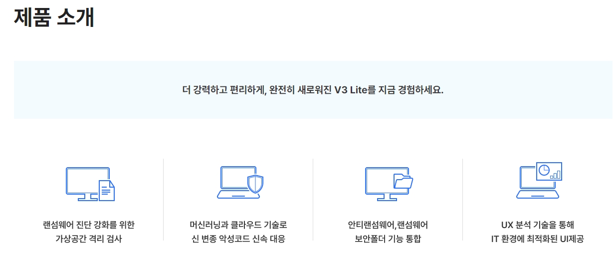 4. V3 Lite는 랜섬웨어 차단부터 악성코드 방지까지 다양한 보안 기능을 제공합니다. 별도의 툴 설치 없이 V3 Lite 하나만으로도 강력한 보호를 받을 수 있으며, 랜섬웨어 보안 폴더를 통해 중요한 파일을 보호할 수 있습니다.