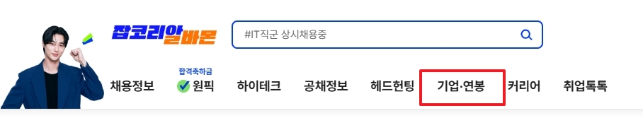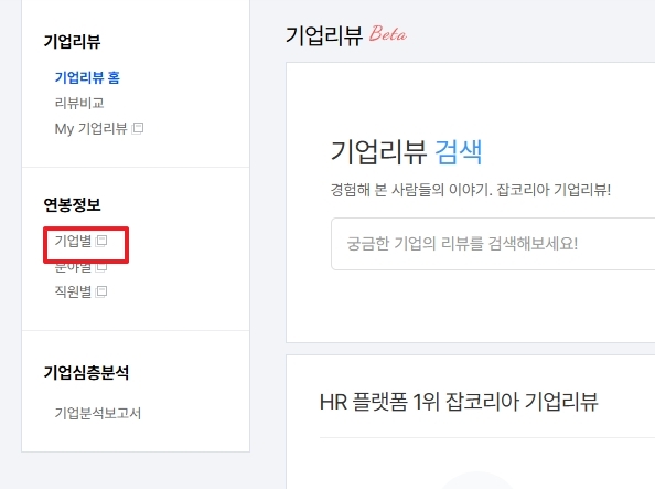 2. 페이지 상단 메뉴에서 기업/연봉을 클릭하고, 연봉 정보를 확인할 수 있는 페이지로 이동합니다. 여기서 원하는 회사의 연봉 수준을 직무별 또는 산업별로 세부적으로 검색할 수 있습니다.