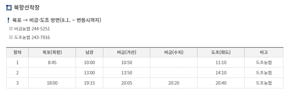 비금도 배 시간표