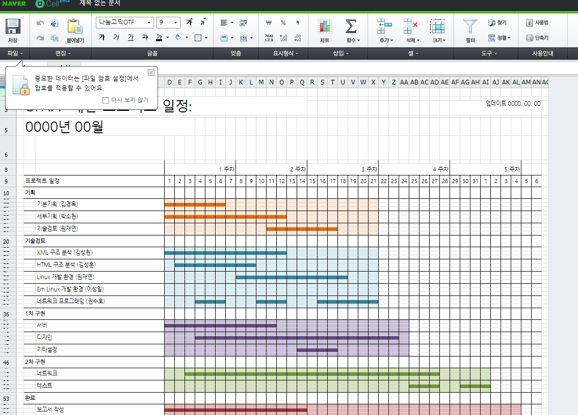 6. 마지막으로, 제공된 양식을 클릭하면 익숙한 엑셀 화면이 나오게 됩니다. 여기서 새 파일을 작성하거나 기존 파일을 수정할 수 있어요. 엑셀을 설치하지 않고도 다양한 작업을 수행할 수 있다는 점이 이 뷰어의 큰 장점입니다. 파일을 모두 작성한 후에는 저장 버튼을 잊지 말고 눌러주세요!