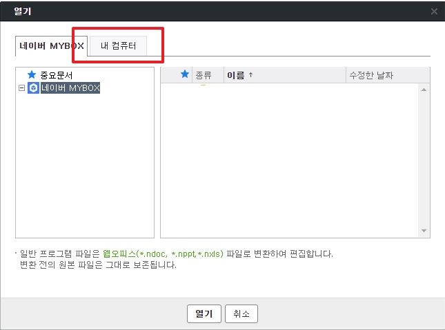 3. 프로그램을 사용하다 보면 네이버 클라우드나 내 컴퓨터 폴더에서 파일을 바로 열 수 있는 기능이 있습니다. 내 컴퓨터 버튼을 눌러 원하는 파일을 찾아보세요. 이렇게 하면 컴퓨터에 저장된 모든 엑셀 파일을 빠르게 확인할 수 있어요.