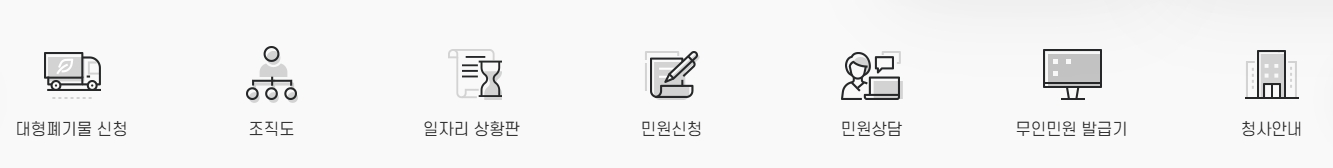7. 민원 상담 및 대형 폐기물 신청 페이지로 이동합니다. 이곳에서는 구민들이 직접 방문하지 않아도 온라인으로 민원 상담을 신청하거나 대형 폐기물 수거를 요청할 수 있는 기능을 제공합니다. 필요한 서류를 온라인으로 작성하여 제출할 수 있으며, 처리 과정도 실시간으로 확인할 수 있습니다. 또한, 구민들이 자주 묻는 질문에 대한 답변도 제공되어 있어 상담 전 필요한 정보를 미리 확인할 수 있습니다.