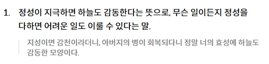 2. 지성이면 감천의 뜻을 확인합니다. 이는 정성이 지극하면 하늘도 감동한다는 의미로, 무슨 일이든지 정성을 다하면 어려운 일도 이룰 수 있다는 뜻을 담고 있습니다. 이 말은 특히 우리 사회에서 부모님이나 중요한 일을 할 때 많이 사용하는 표현으로, 꾸준한 노력이 결국 큰 성과를 이루게 된다는 교훈을 줍니다.