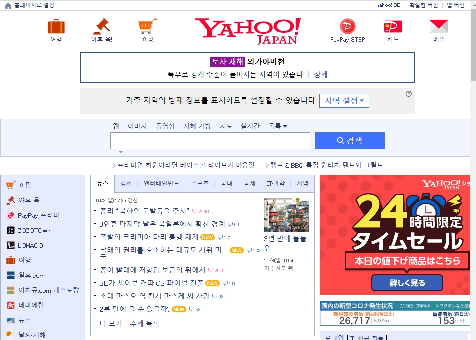 야후 재팬 한글판 홈페이지