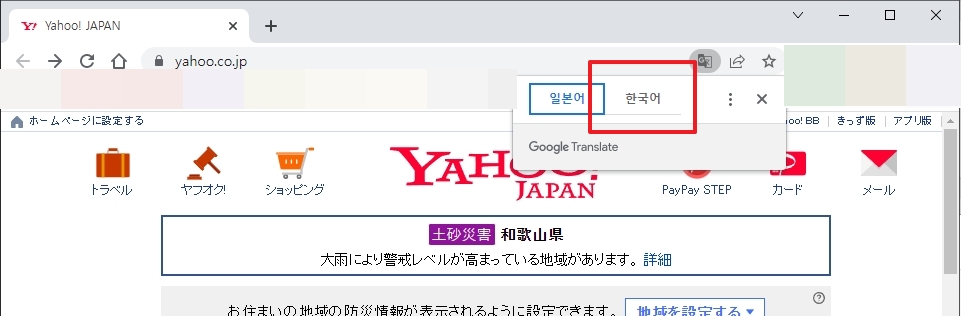 3. 번역 아이콘을 클릭하여 번역 언어를 한국어로 설정합니다. 이제 야후 재팬의 모든 텍스트가 한국어로 번역되어 페이지를 이해하기 쉽게 제공합니다. 특히 뉴스, 정보 등의 콘텐츠가 한눈에 들어와 편리합니다.